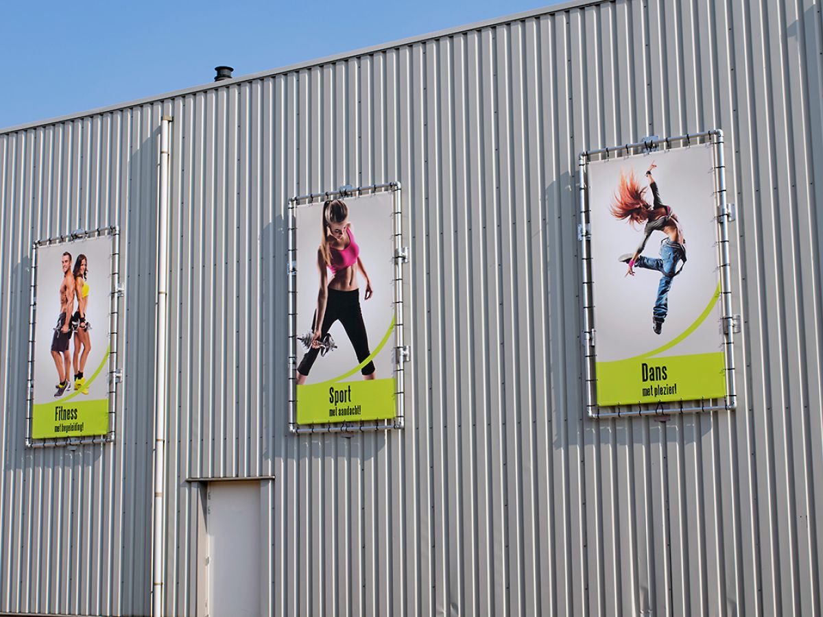Het ophangen van spandoeken op strategische locaties, zoals hekken rondom de bouwplaats of langs drukke wegen, kan helpen om de aandacht te vestigen op een nieuw bouw- of vastgoedproject.